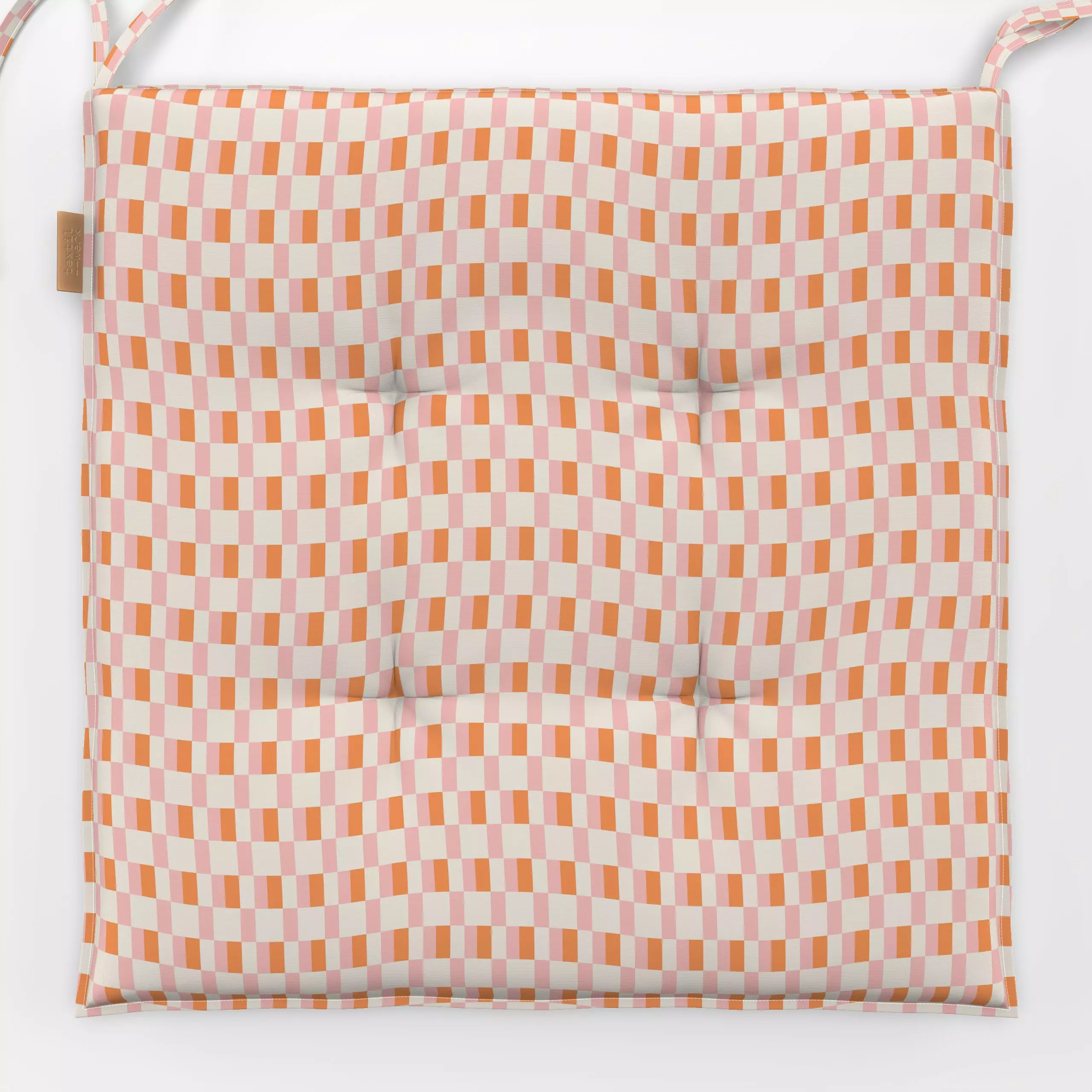 Sitzkissen Lineas A Cuadros - Sommer, Symbole & Muster - von „Karen Menzenbach"; Muster, rosa, Retro, Garten, Orange, grafis...
