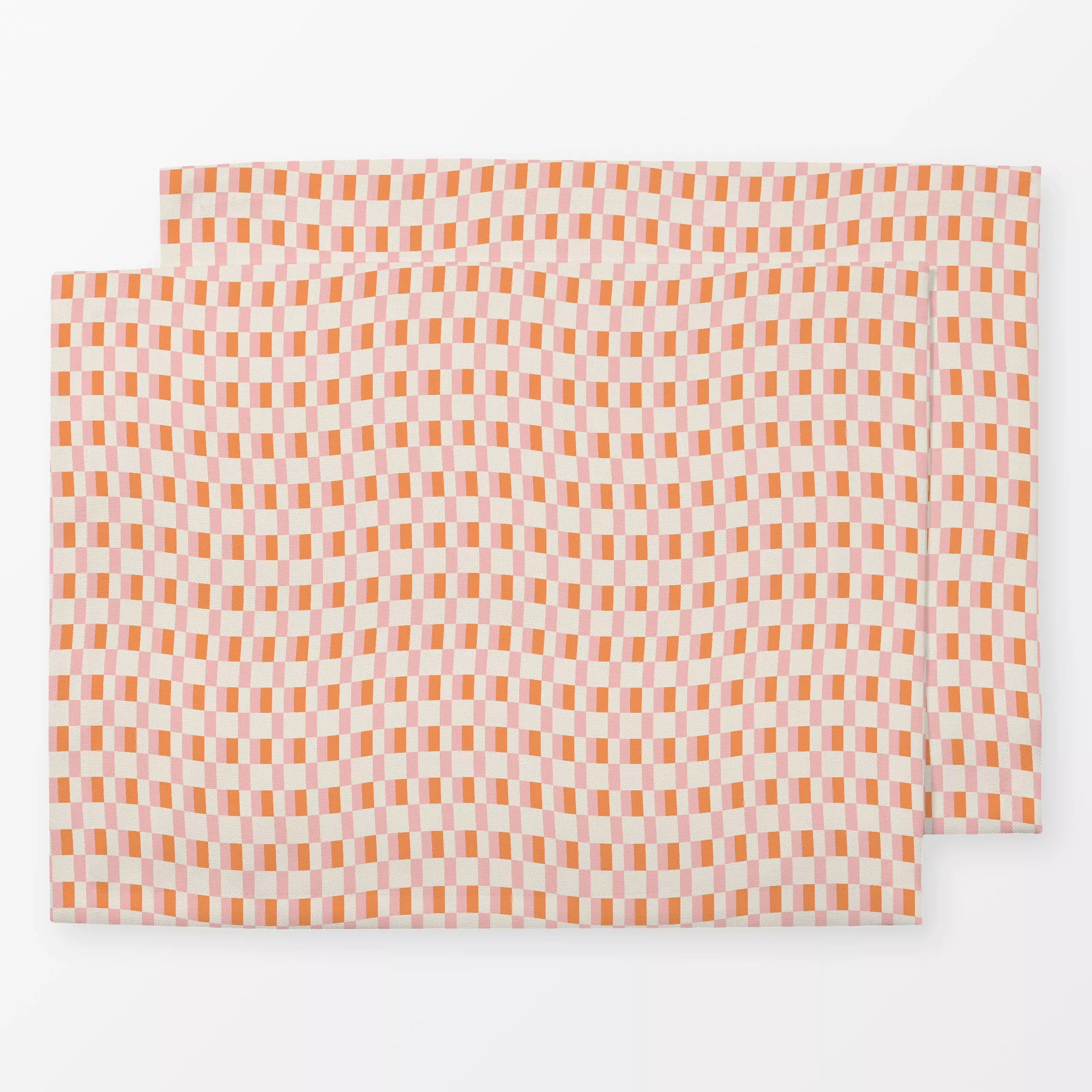 Tischset Lineas A Cuadros - Sommer, Symbole & Muster - von „Karen Menzenbach"; Muster, rosa, Retro, Garten, Orange, grafisch...
