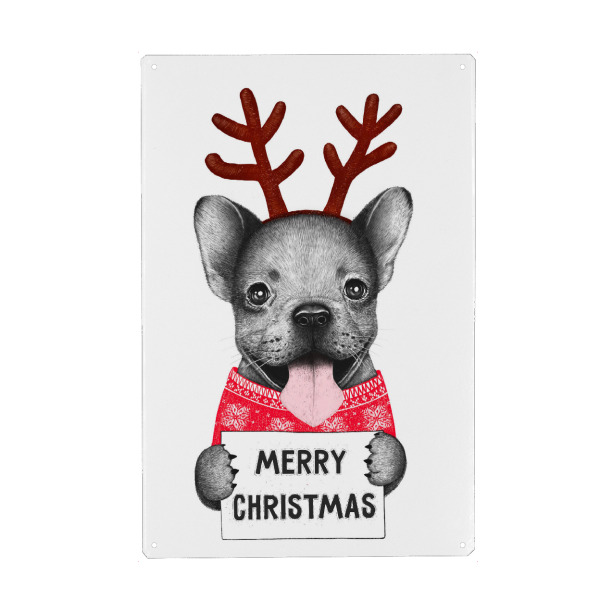 Metall Poster "Christmas dog" artboxONE - Tiere,Weihnachten,Lustig - Dog,Xmas,Merry christmas,Cute,Gift idea,Hund,Tier,Animal,Lustig,Funny,Weihnachten