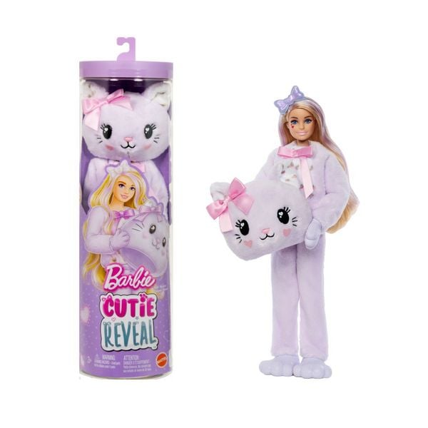 Barbie Cutie Reveal Puppe, Lila Katze, 10 Überraschungen, Gelenkpuppe, Ab 3 Jahren