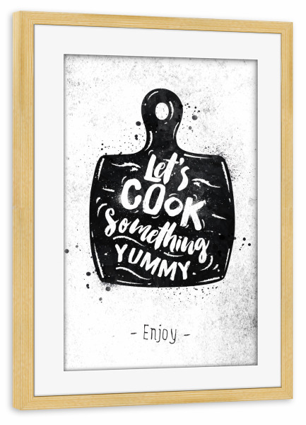 Poster mit Rahmen kiefer "Cutting board black" artboxONE - Essen & Trinken,Schwarzweiß