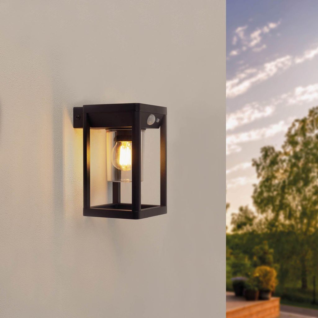 Ledvion - LED-Solar-Wandleuchte mit Bewegungssensor, quadratisch klar, schwarz, IP44, Solar, 2,2 W, 3000 K, Bewegungserkennung & Dämmerungsschalte...