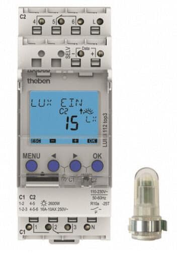 Theben LUNA 112 top3 EL Dämmerungsschalter DIN-Schiene, digital, Einbau-Lichtsensor, 2 Kanäle (1120230)