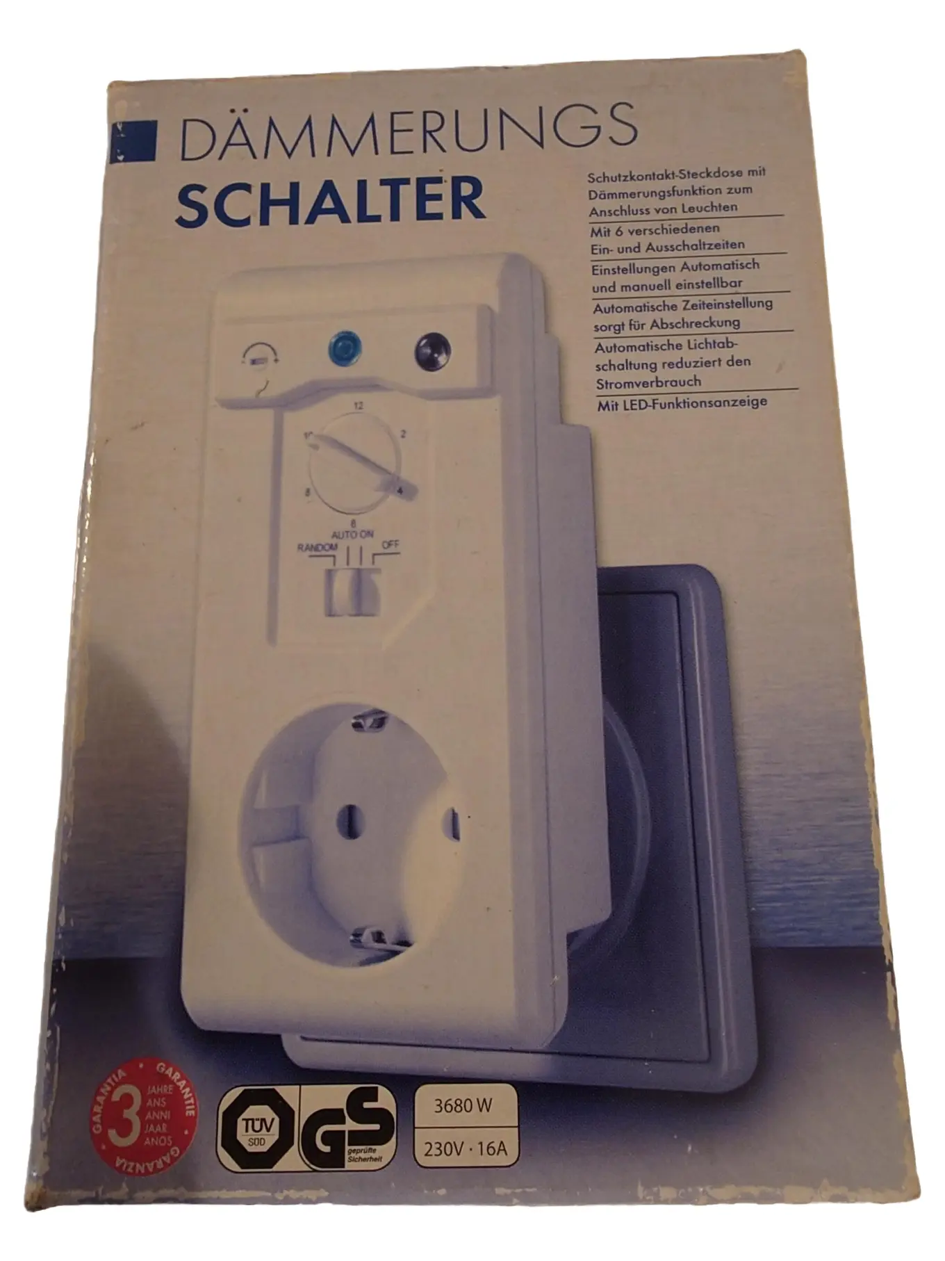 MARKENLOS Uni Elektra Dämmerungsschalter Steckdose 230V 16A 3680W Timer Weiß