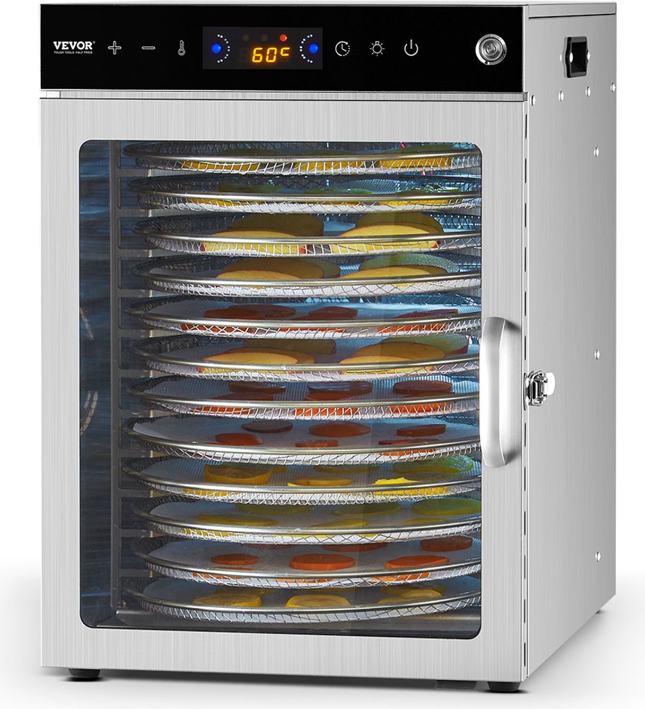 VEVOR Dörrgerät, 12 Edelstahlschalen, 800 W, elektrischer Dörrautomat mit einstellbarer Temperatur zum Trocknen von Fleisch, Obst, Gemüse, Krä...