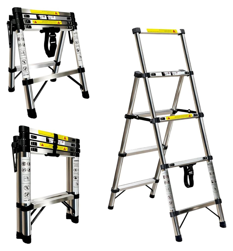 1,1+1,4 m Teleskopleiter, Edelstahl Ausziehbare Leiter, 3+4 Treppe Mehrzweckleiter für Dach, Haushaltsleiter, Außenleiter, Wohnmobil, 150 kg Bela...