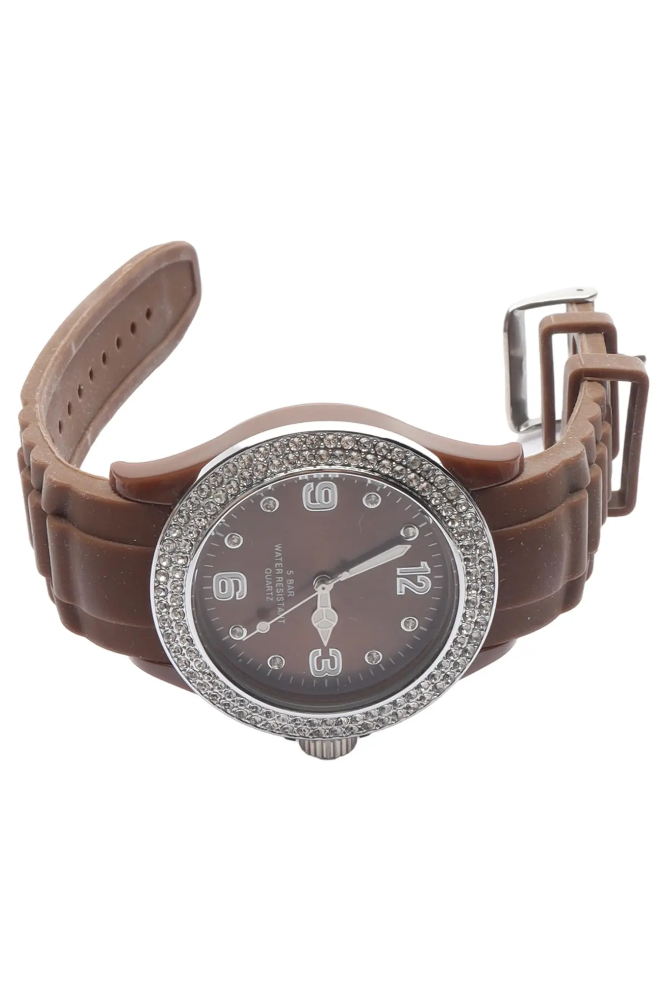 MANDARIN Armbanduhr Damen Braun Sportlich Streetwear Strass Edelstahl Silikon 40mm