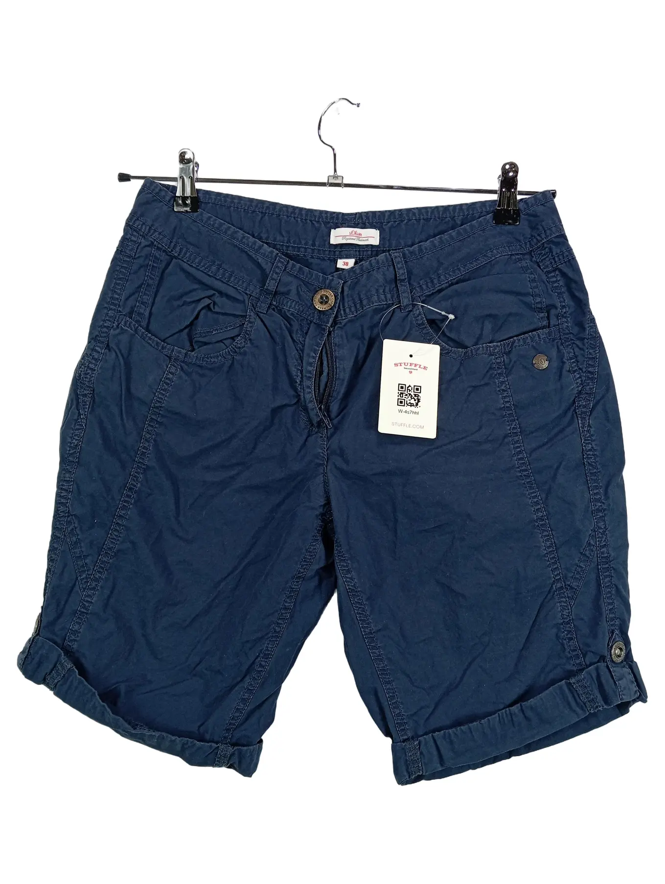 S.OLIVER Damen Shorts Bermuda Gr. 38 Blau Baumwolle Casual