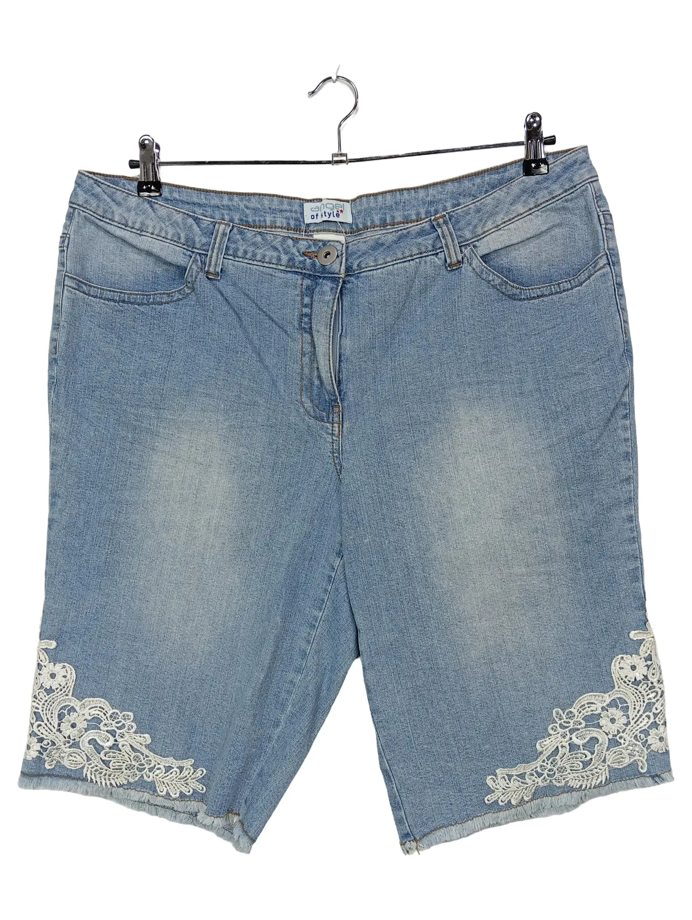 ANGEL OF STYLE Damen Jeans Shorts Bermuda Spitze Gr. 48 Blau