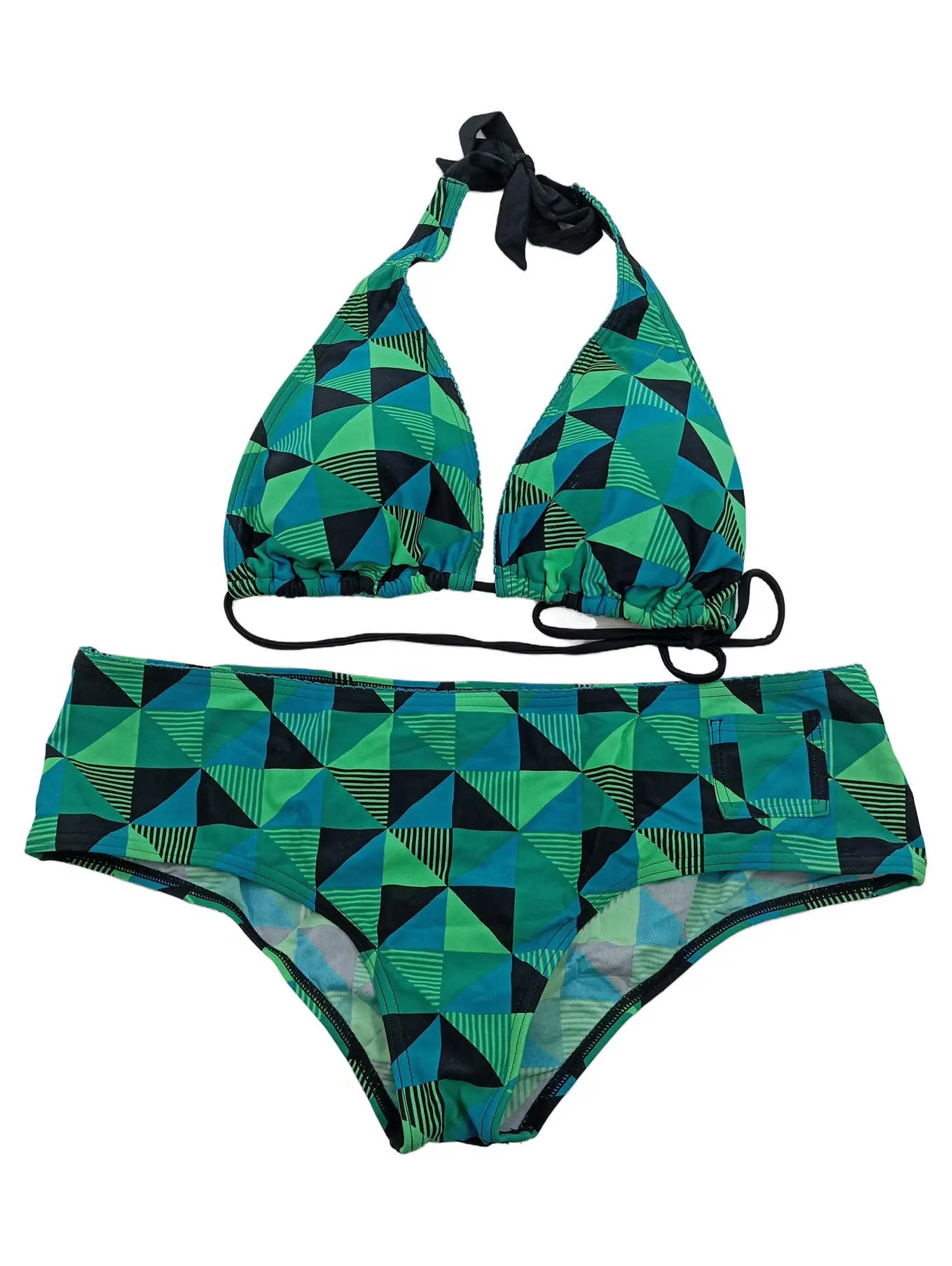 PUMA Damen Bikini Gr. 44 Grün Geometrisch Triangel Sportlich Bademode