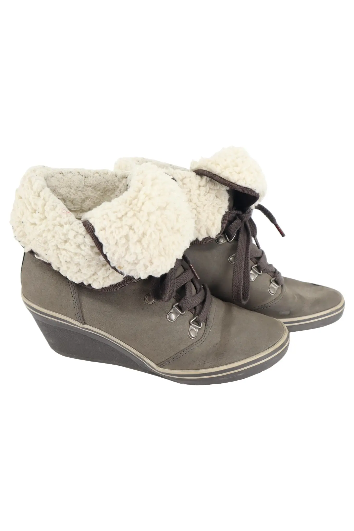 ESPRIT Damen Stiefelette Gr. 39 Grau Fellbesatz Keilabsatz Winter Boots
