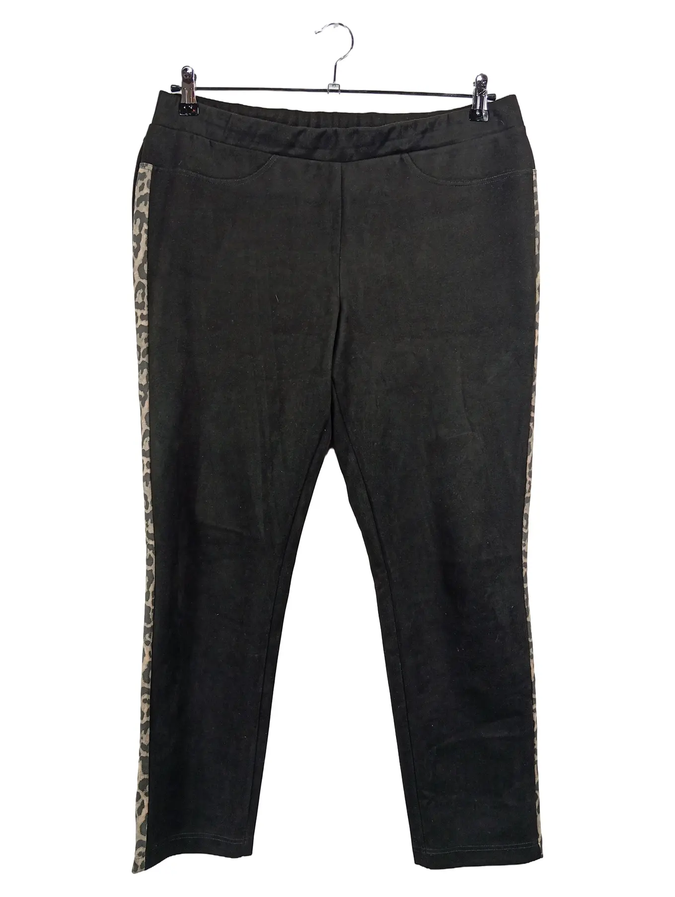 PFEFFINGER Damen Leggings Leopard Seitenstreifen Schwarz Gr. 46 XL