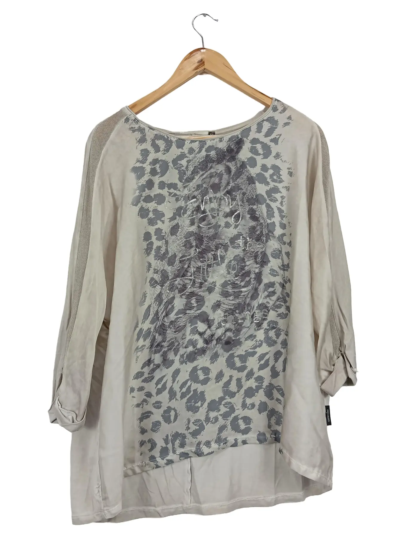 CAPPUCCINO ITALIA Cappuccino Damen Langarmshirt Gr. 42/XL Leopard Print Beige Grau