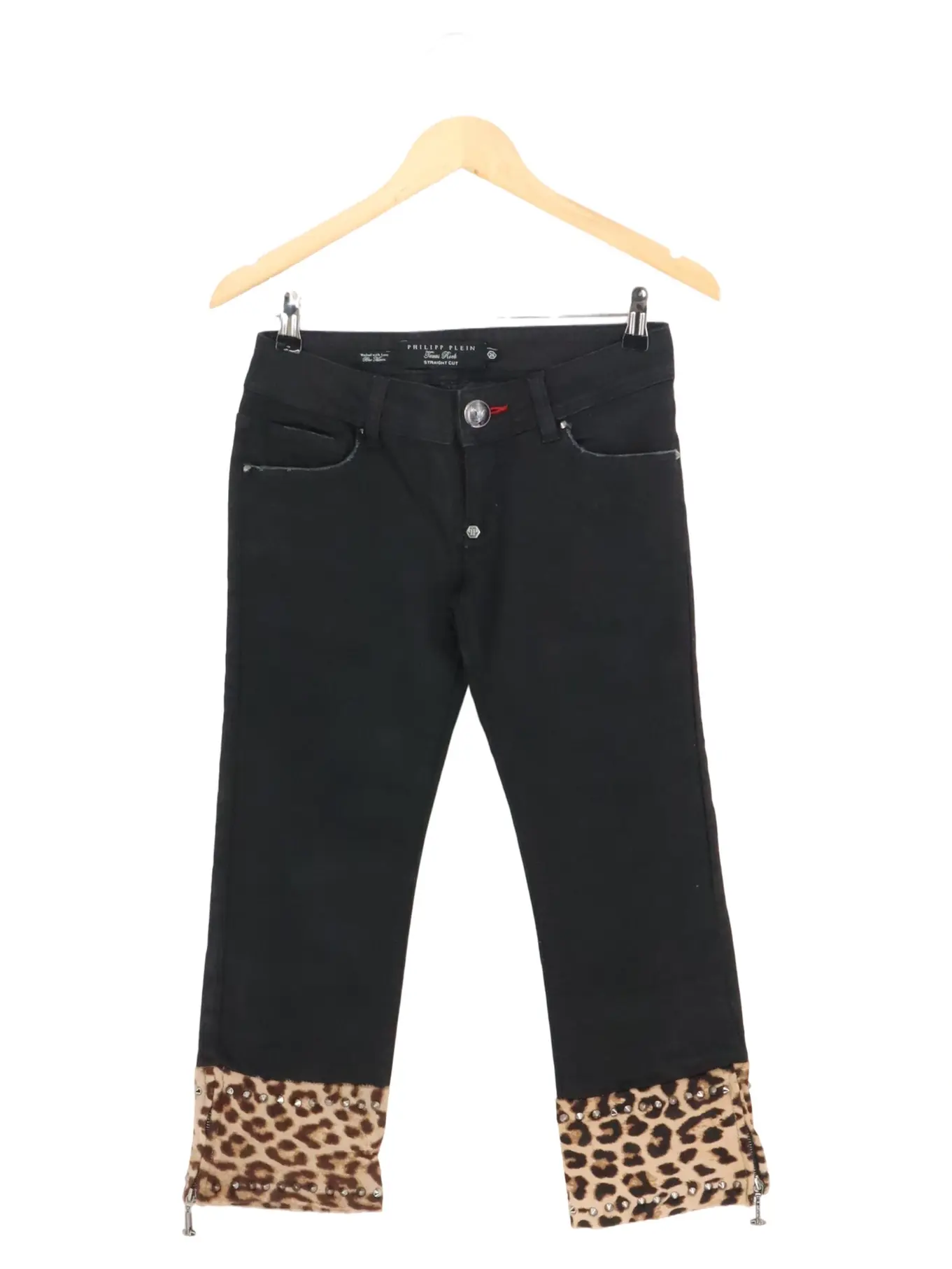 PHILIPP PLEIN Damen Jeans W26/34/XS Schwarz Texas Rock Leopard Nieten Straight Leg
