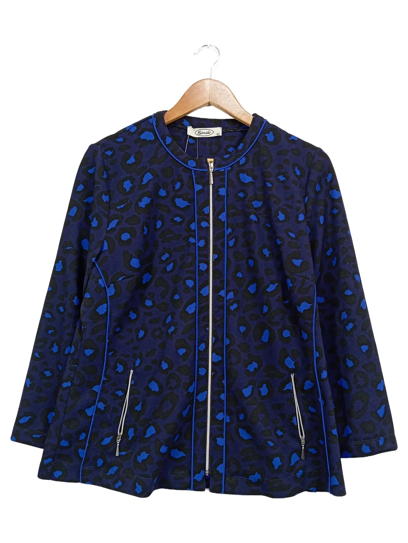 MARKENLOS Sensia Damen Leichte Jacke Gr. 42 Blau Leopard Animal Print Reißverschluss