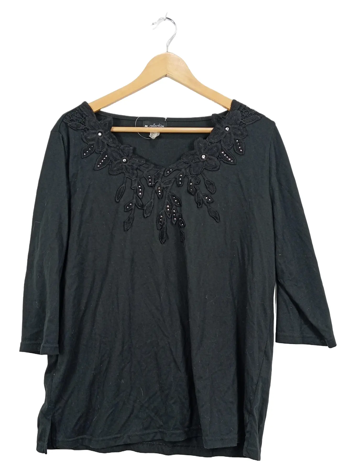 M.COLLECTION m. collection Damen Shirt Gr. 44 Schwarz Spitze Strass 3/4-Arm Elegant