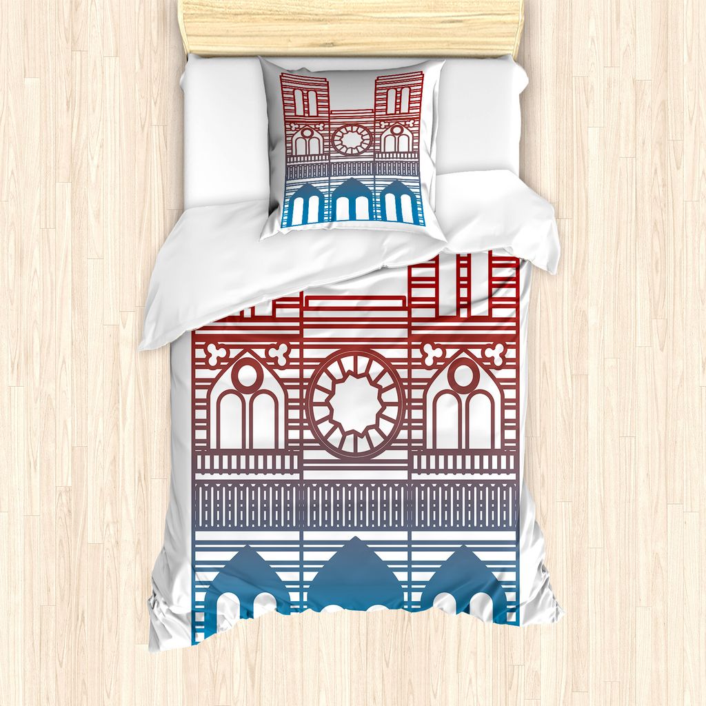 ABAKUHAUS Notre Dame de Paris Bettbezug Set für Einzelbetten, Stadtansicht Kunst, Milbensicher Allergiker geeignet mit Kissenbezug, 135 cm x 200 c...