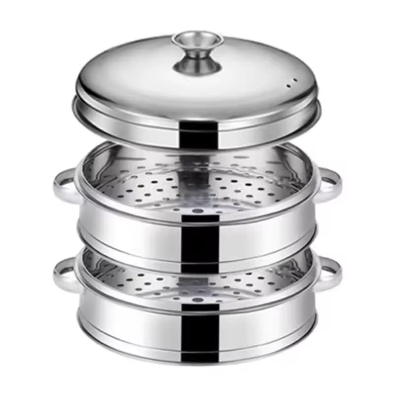 Edelstahl 3-Etagen-Dampfgarer mit Glasdeckel Kochgeschirr-Dampftopf-Set Küchenutensilien