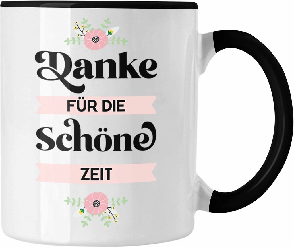 Trendation - Danke für Die Schöne Zeit Tasse Geschenk Abschied Kollege Lehrerin Kollegin Freundin Abschiedsgeschenk (Schwarz)