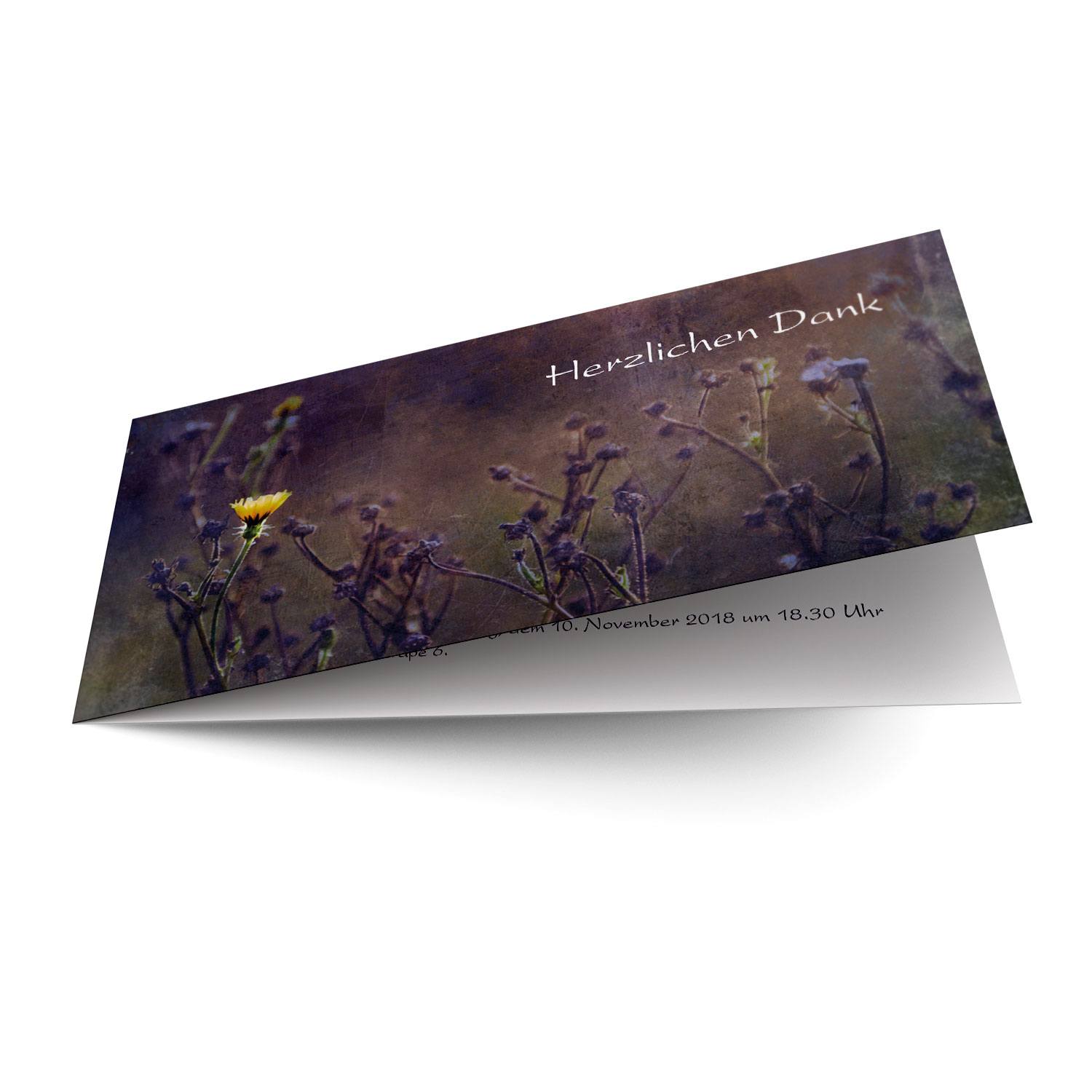 Trauer Danksagung Gelbe Blume, Klappkarte auf feinem Bilderdruckpapier