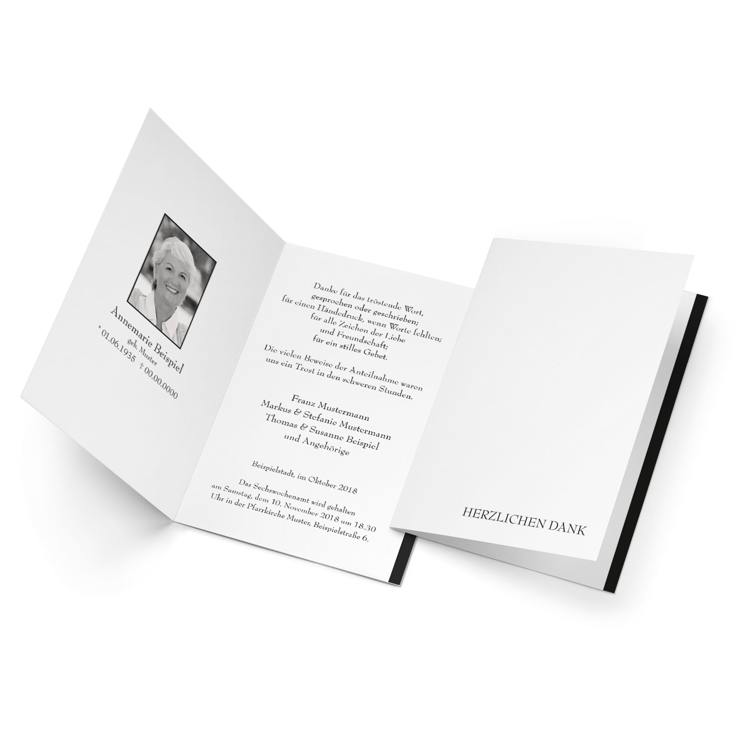 Trauerkarten Danksagungskarten zur Beerdigung weiss in Mittlere Klappkarte hoch, Dankeskarten "Stille Trauer", Danksagung mit Spruch & Text selbst.