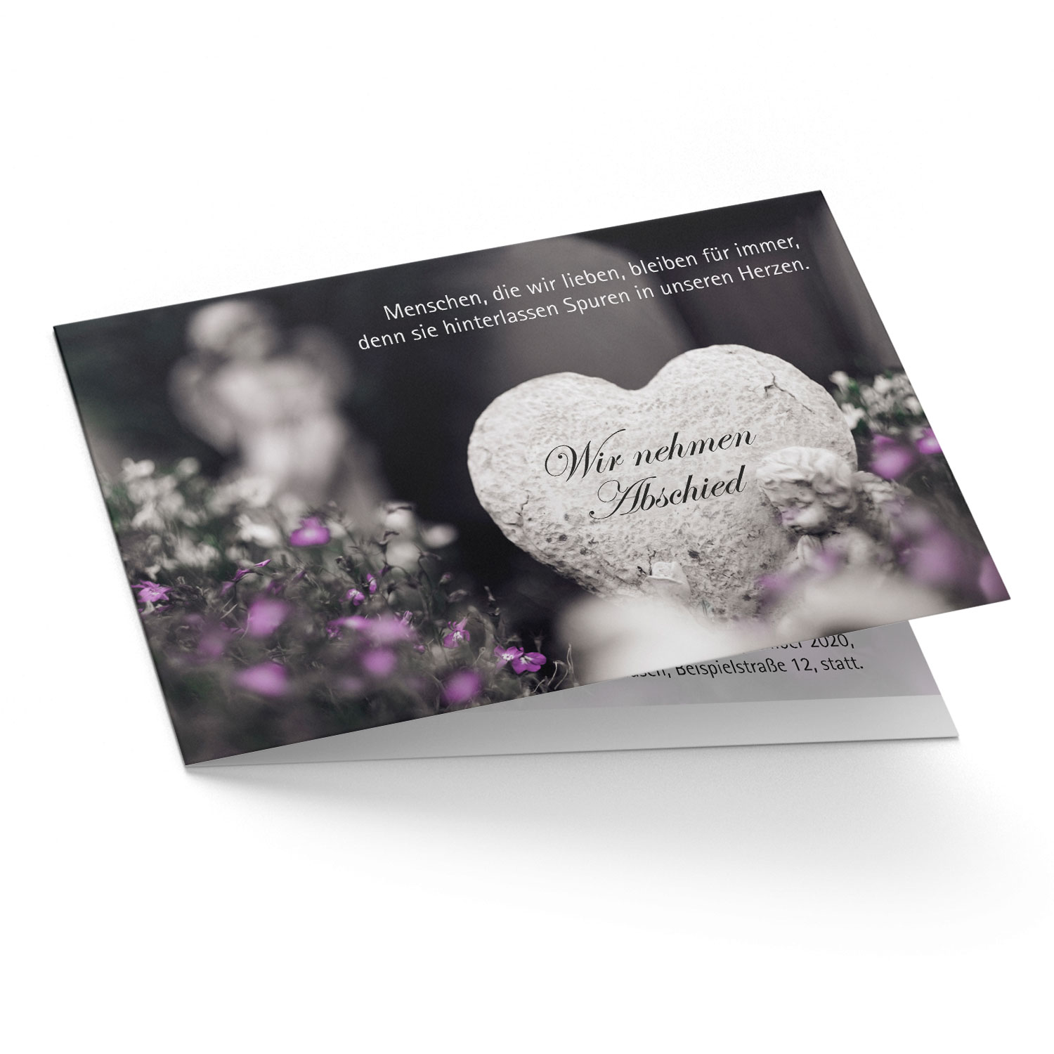 Trauer Danksagung Steinherz, eine stilvolle Klappkarte auf feinem Papier