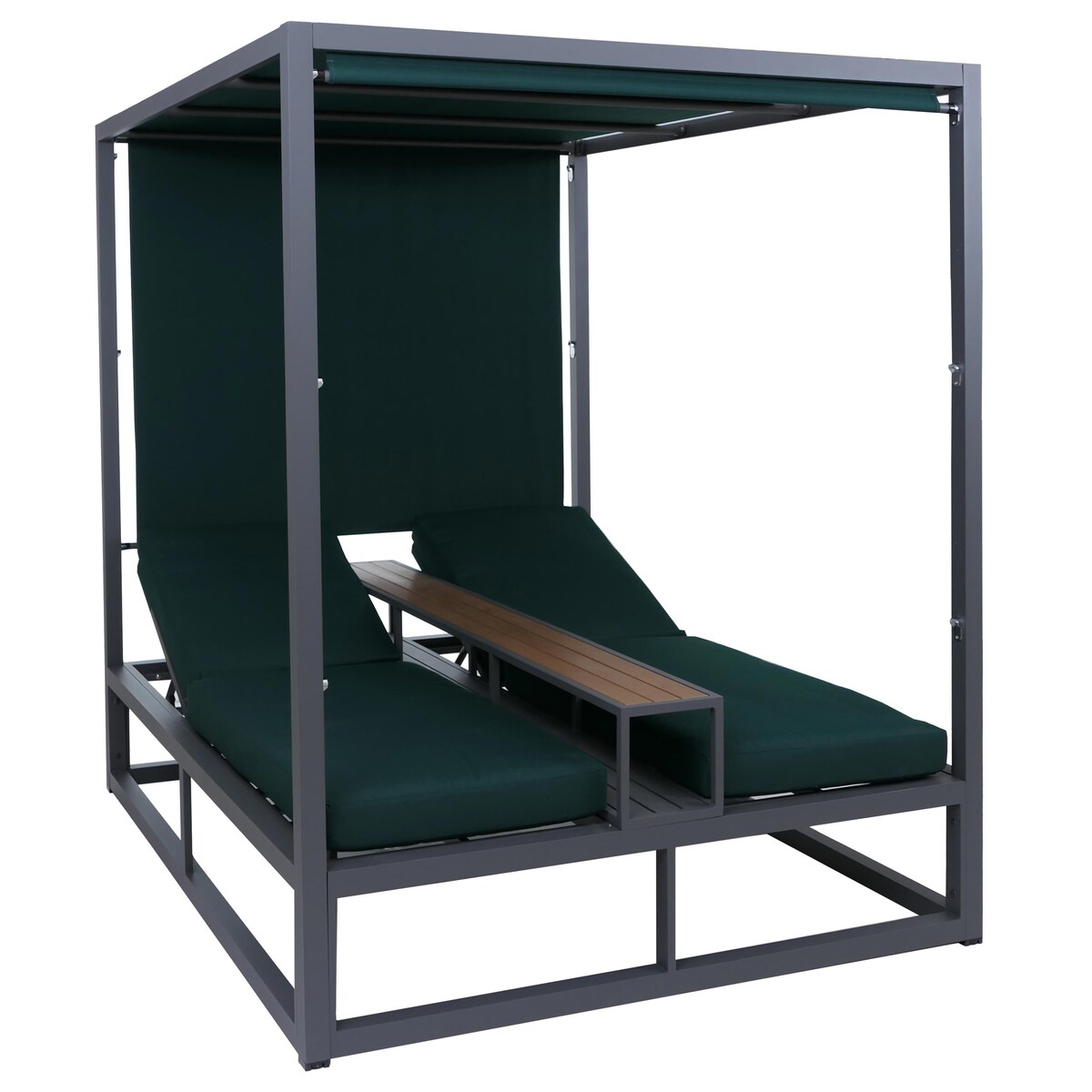 Mendler Alu Lounge-Gartenliege HWC-P81, Sonnenliege Daybed, 10cm-Polster 220g/m² 196x165x196cm ~ dunkelgrau, Polster dunkelgrün