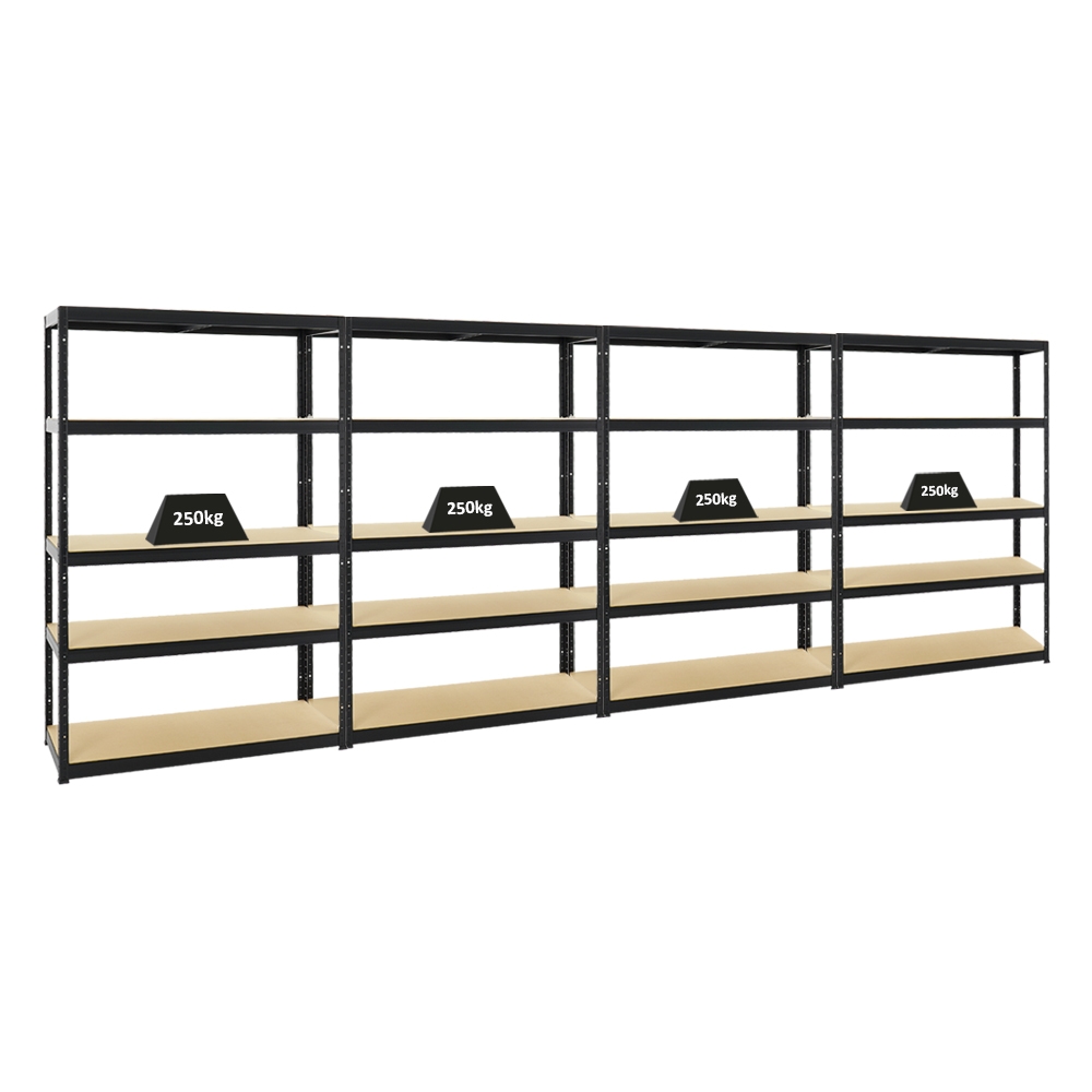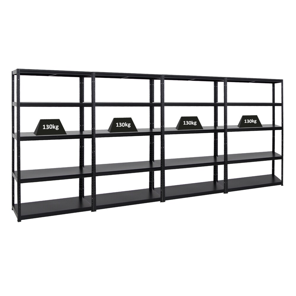 Mega Deal | 4x Schwerlastregal Giant Tiger | HxBxT 200x120x40cm | Fachlast 265kg | 5-Ebenen | Schwarz | Garagenregal, Lagerregal, Steckregal, Kelle...