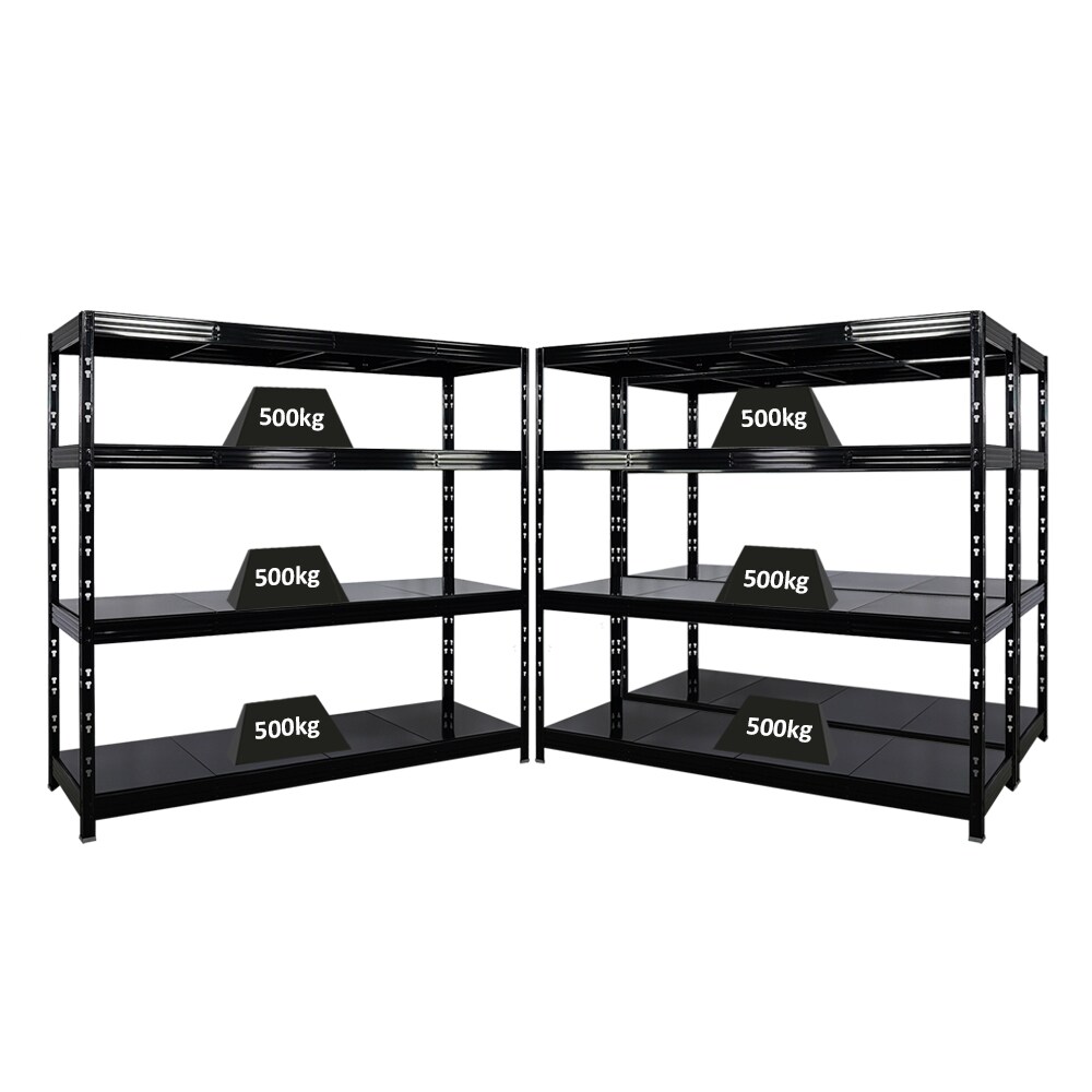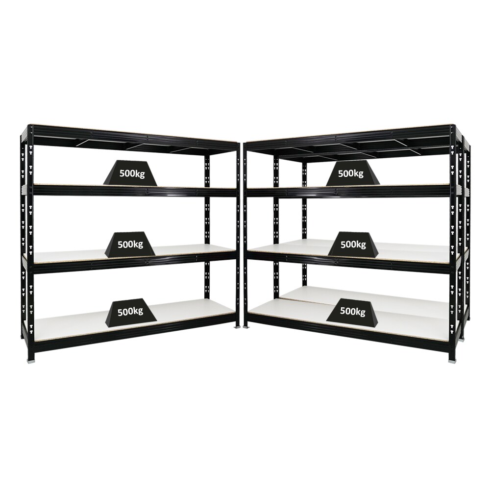 Mega Deal | 4x Profi Schwerlastregal Rhino | HxBxT 200x200x60cm | 4 Spanplatten-Ebenen 8mm | Fachlast 500kg | Schwarz