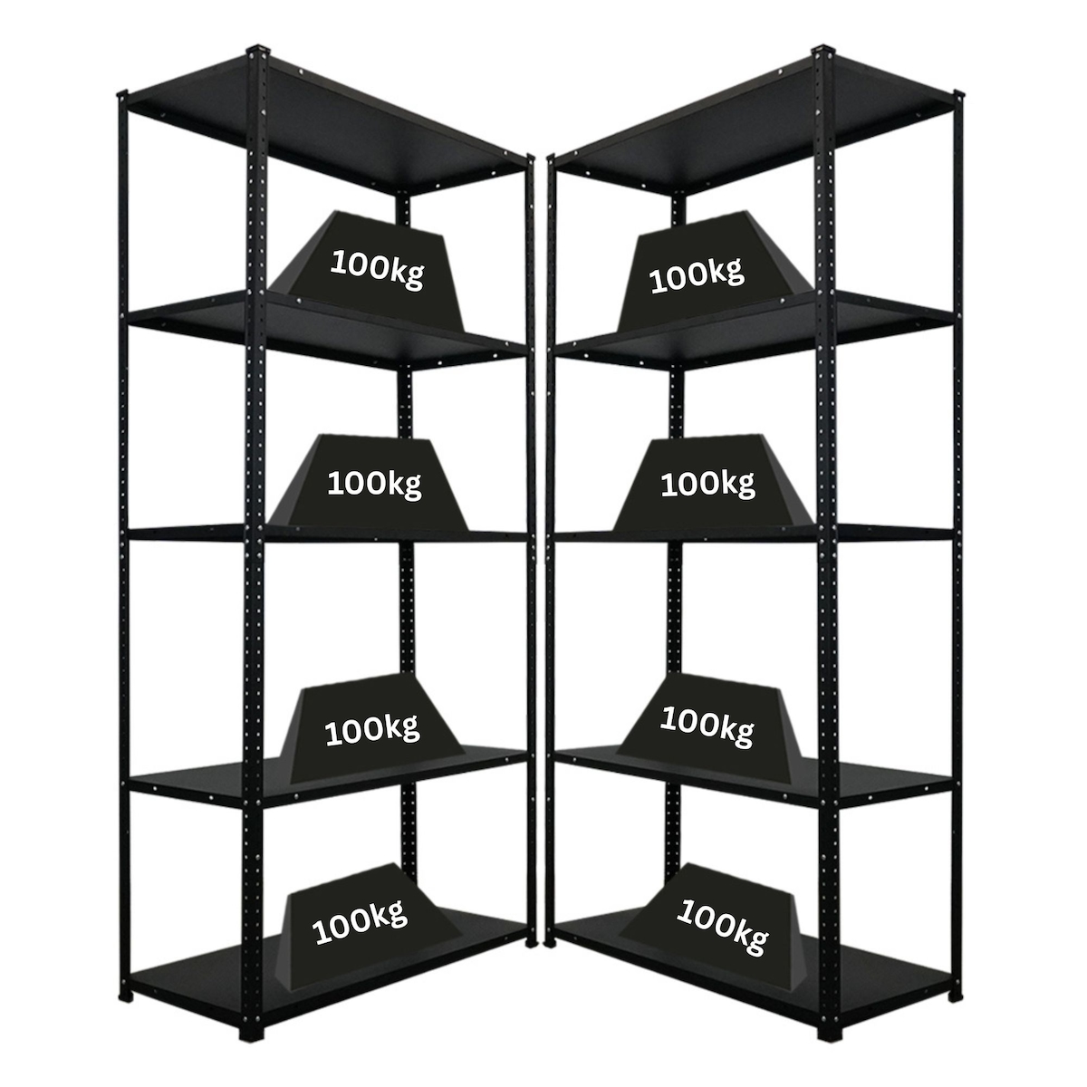 Mega Deal | 2x Schwerlastregal DINO | HxBxT 180x200x60cm | 4 Melamin-Ebenen 16mm | Fachlast 500kg | Schwarz