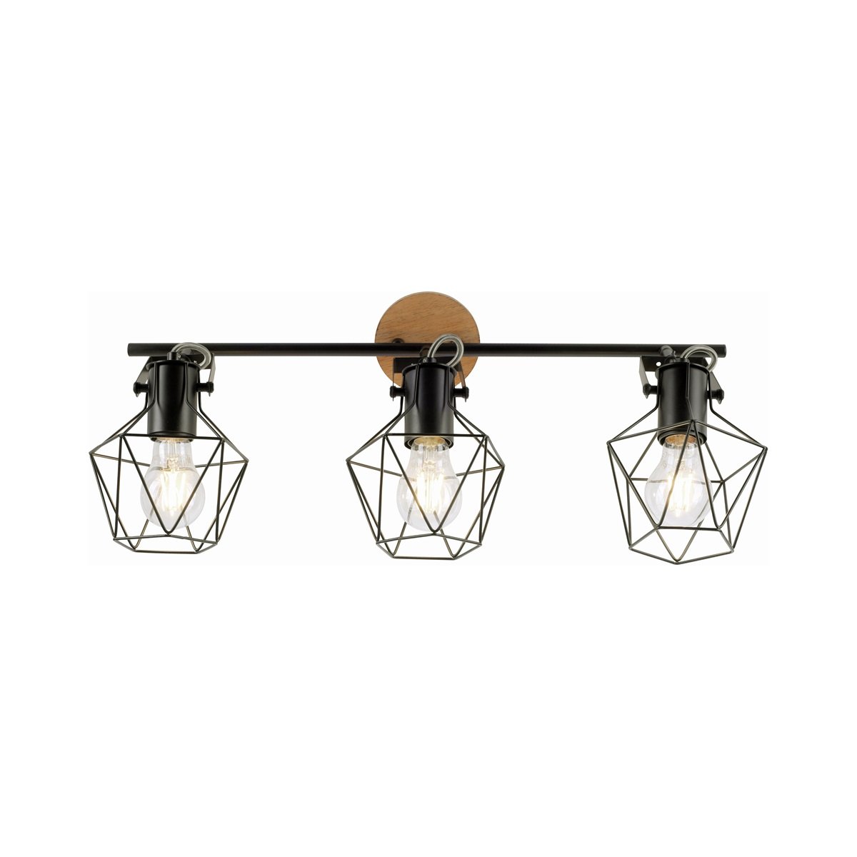 Trio Leuchten - Industrie I Vintage I Industrie I Vintage I Deckenleuchte I Deckenlampe I Lampe I Leuchte schwarz mit Holz 3-flammig Spotbalken-Lic...