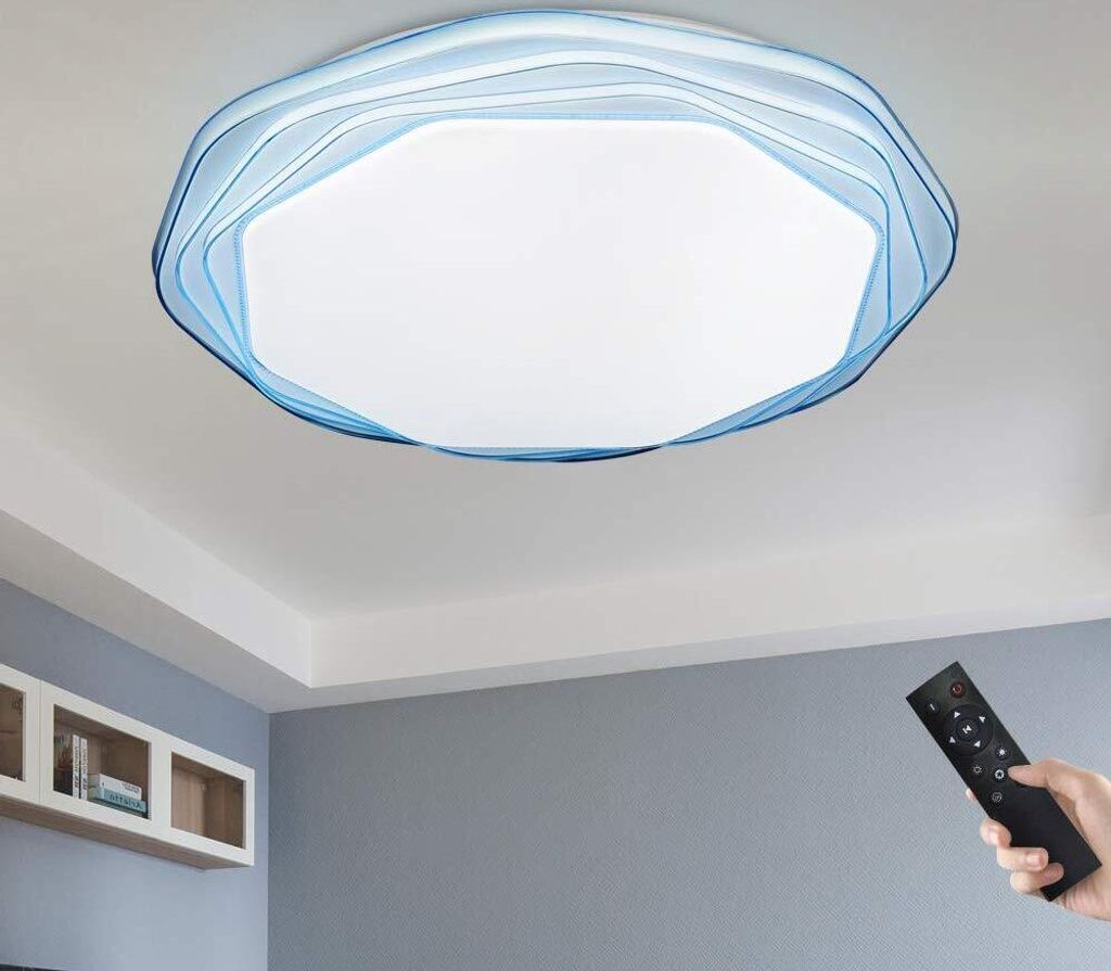 JDONG Led Deckenleuchte Dimmbar mit Fernbedienung steuerbare Farbtemperatur 45W Ø50CM Fur Wohnzimmer, Schlafzimmer, Küche und Esszimmer (Blau)