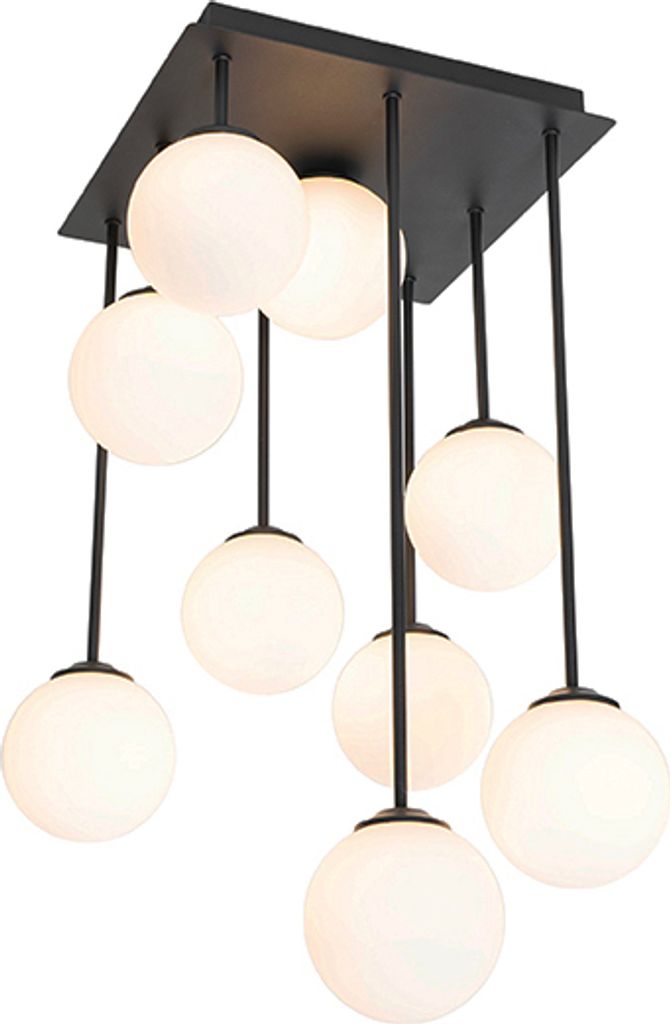 QAZQA - Art Deco Deckenleuchte I Deckenlampe I Lampe I Leuchte schwarz mit Gold I Messing und Opalglas 8 Lichter - Lynn I Wohnzimmer I Schlafzimmer...
