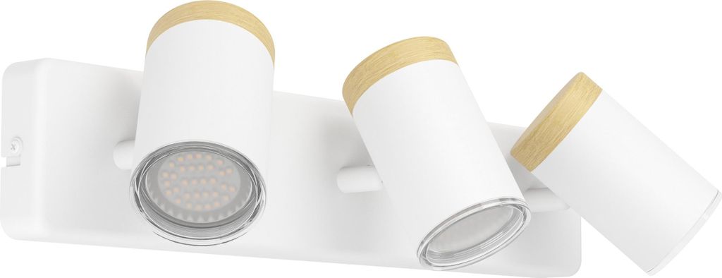 EGLO Deckenlampe 3-flammig Consuma, Deckenstrahler für Wohnzimmer und Badezimmer, Deckenleuchte mit 3 Spots, Holz und Stahl in Weiß, GU10 , IP44