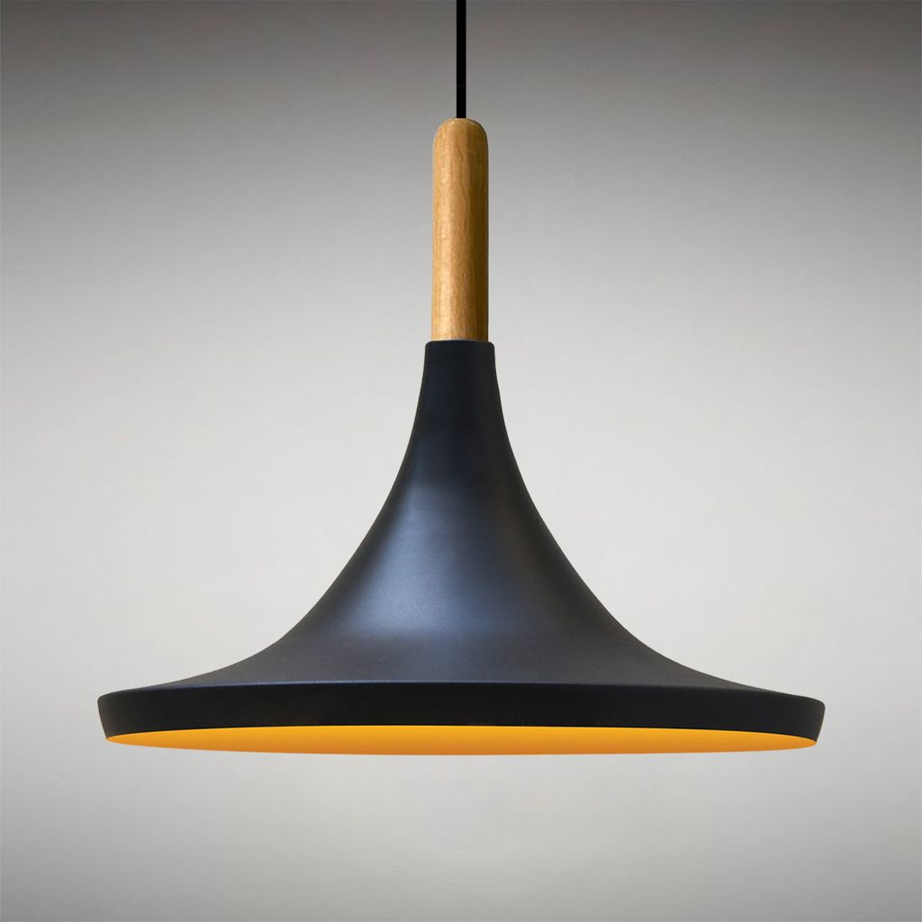 STOLARNIA PIKA Deckenleuchte - Holz Runde Deckenlampe Schwarz 1xE27 (∅27 cm) - Modern Lampe für Schlafzimmer, Wohnzimmer, Flur, Küche - LEJA