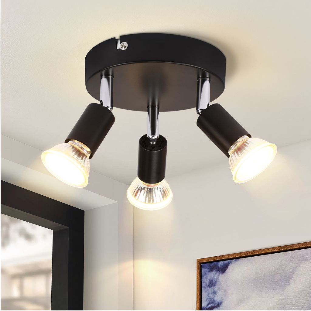ZMH LED Deckenstrahler 3 Flammig Schwarz Deckenleuchte Modern GU10 Deckenspot Schwenkbar 350°Drehbar Rund Wohnzimmer Schlafzimmer Flur