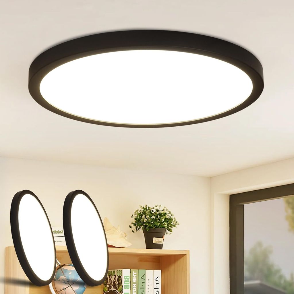 ZMH LED Deckenleuchte 2ER Set Wohnzimmer Schwarz 24W Rund Flach Modern Schwarz 4000K Neutralweiß Ultra Dünn IP44 für Wohnzimmer , Büro
