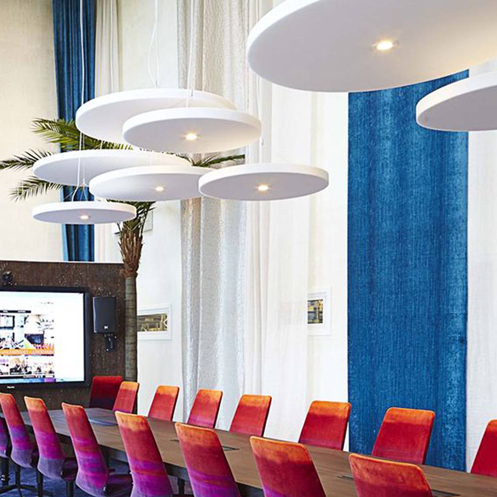 Schallabsorber Rund 80 cm Durchmesser Weiss | Dicke 5 cm | Oeko-Tex Standard 100 zertifiziert | Deckensegel Rotun | Gunnar