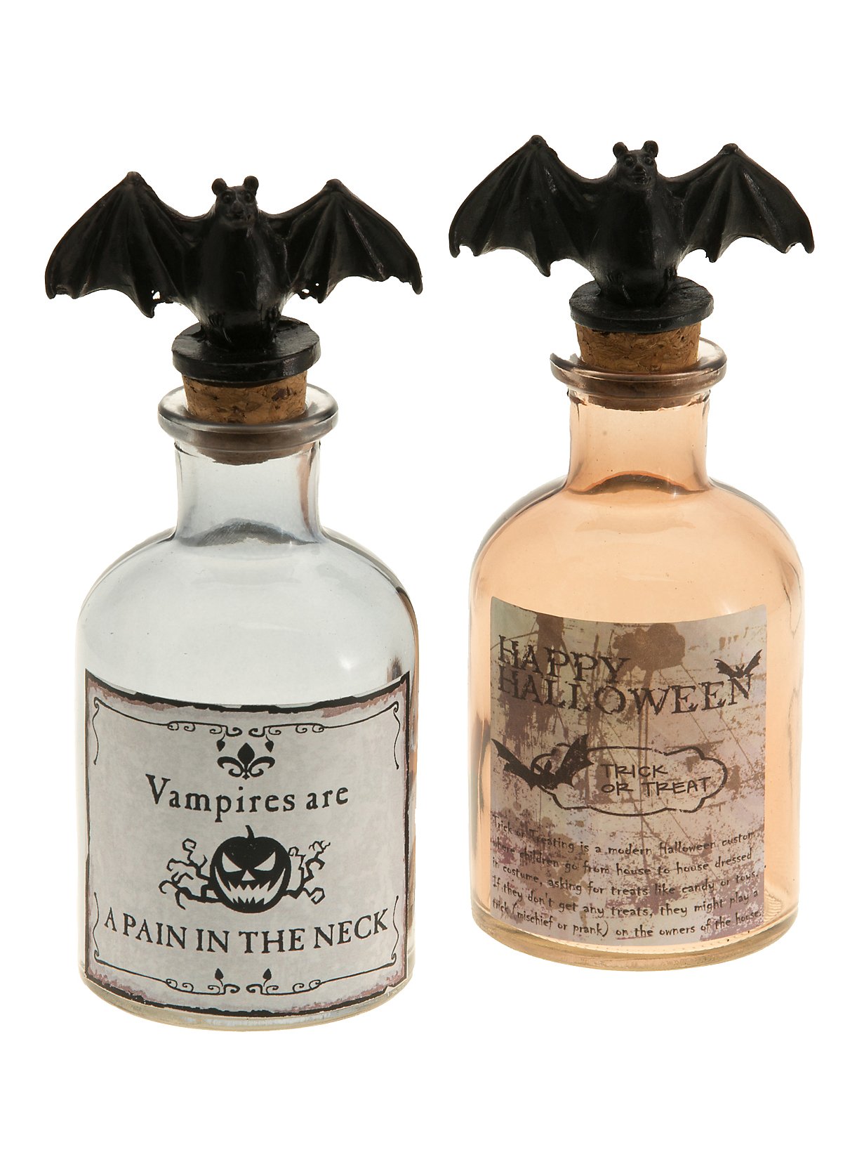 Two Bat Glass Bottles Halloween Decoration