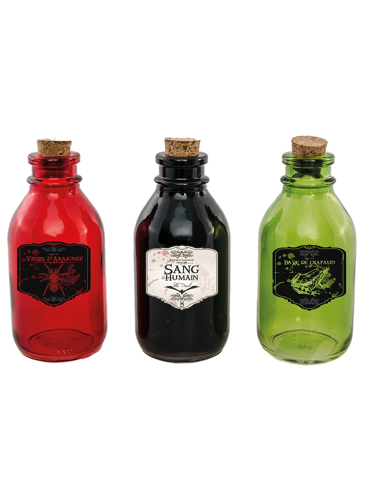Three Glass Bottles With Corks Halloween Decoration