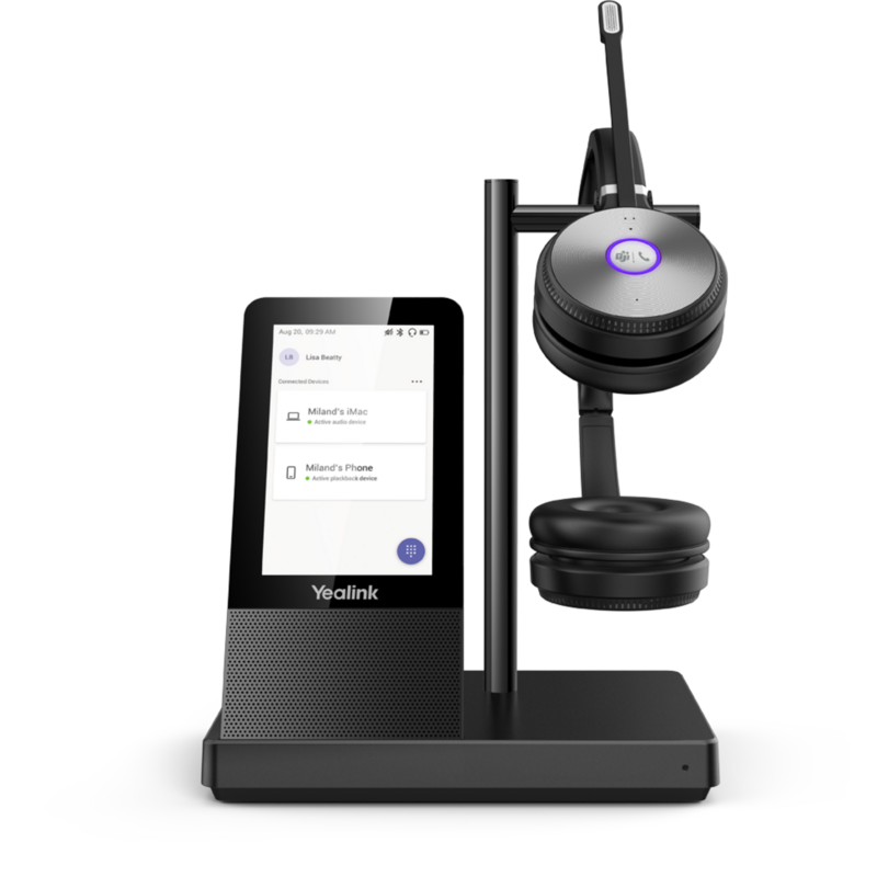 Yealink DECT WH64 Duo UC und Teams mit Ladestation Schnurloses Headset für die Geschäftskommunikation, das DECT und Bluetooth für maximale Effizienz