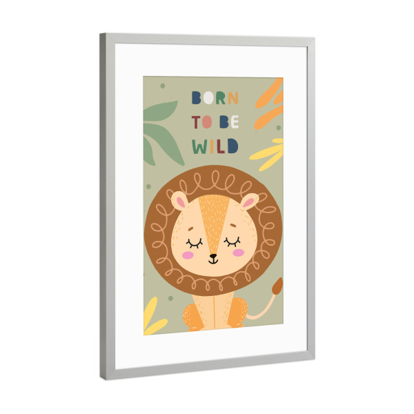 Poster mit Rahmen Silber "KIDS art lion BOBO" artboxONE - Tiere - Kinderzimmer,Babyzimmer,Junge,Mädchen,Tiere,Wandbilder,Deko,Baby,Löwe