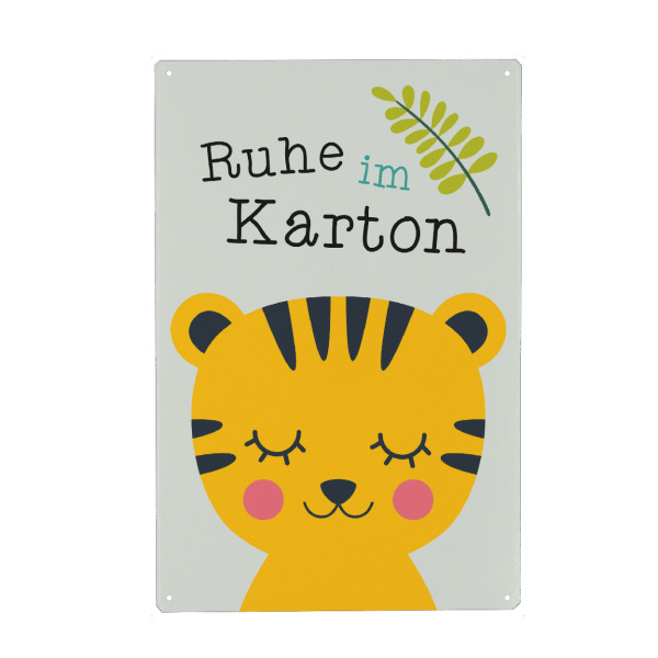 Holzbild "KIDS art - Ruhe im Karton" artboxONE - Für Kinder,Tiere - Kinderzimmer,Babyzimmer,Junge,Mädchen,Tiere,Wandbilder,Deko,Baby,Tiger,Schlafen