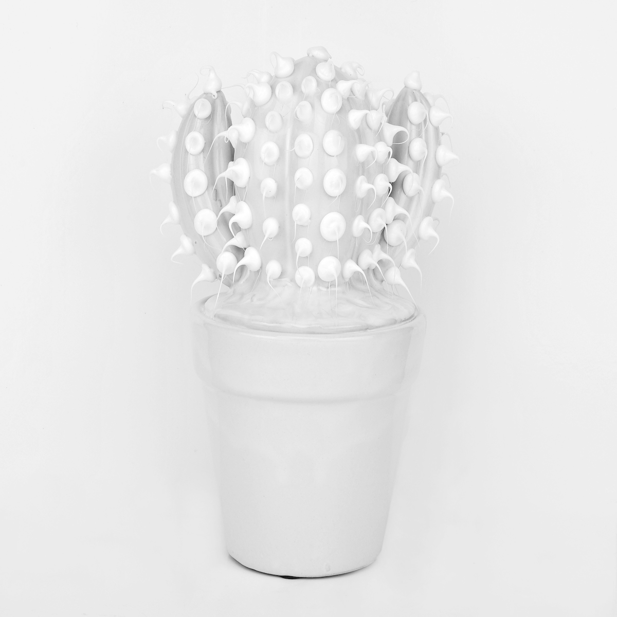 Deko-Kaktus Brice M in Weiß/Grau aus Keramik - C1059-S1-W