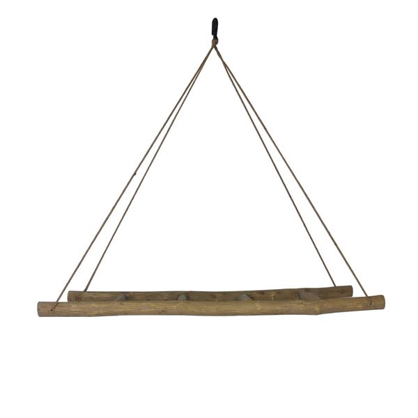 Dekoleiter aus Eschenholz, hängend, Old Look, 120 cm, mit 5 Haken und Deckenhaken aus Gusseisen, rustikale Holzleiter als Dekoration