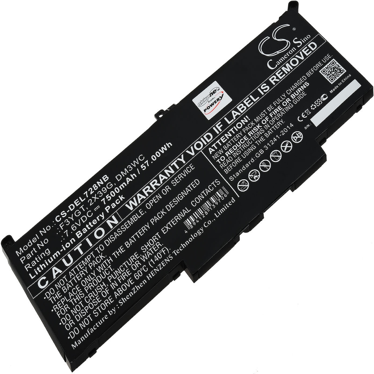PowerSmart 57Wh 7,60V Akku für Dell Latitude 13 7390, Latitude 14 7480,