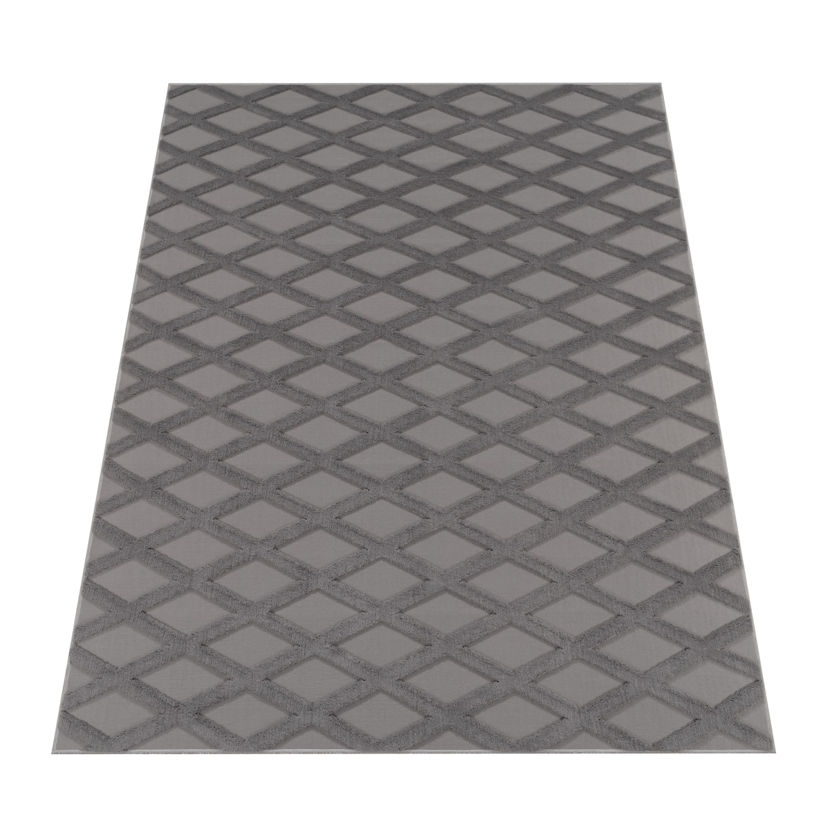 Moderner Teppich 3D-Effekt Zeitlos Waschbar Strapazierfähig | Silber 200x290 cm Flur Saugroboter geeignet Gekettelt | ILLER – Kadima Design