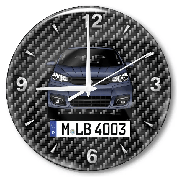 eCity Sport Wanduhr personalisiert mit Auto u. Kennzeichen! M, Carbon Design