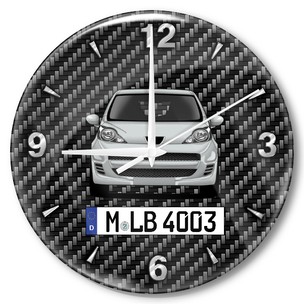 107 (3-Türer) Wanduhr personalisiert mit Auto u. Kennzeichen! M, Carbon Design