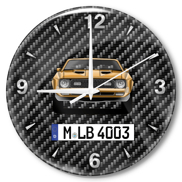 Mustang Mach 1 Wanduhr personalisiert mit Auto u. Kennzeichen! M, Carbon Design